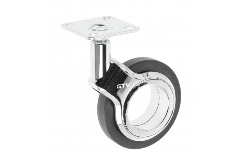 Furniture roller GTV GIRA, H=107 mm, fi75 mm, without brake, plastic + steel, black + chrome