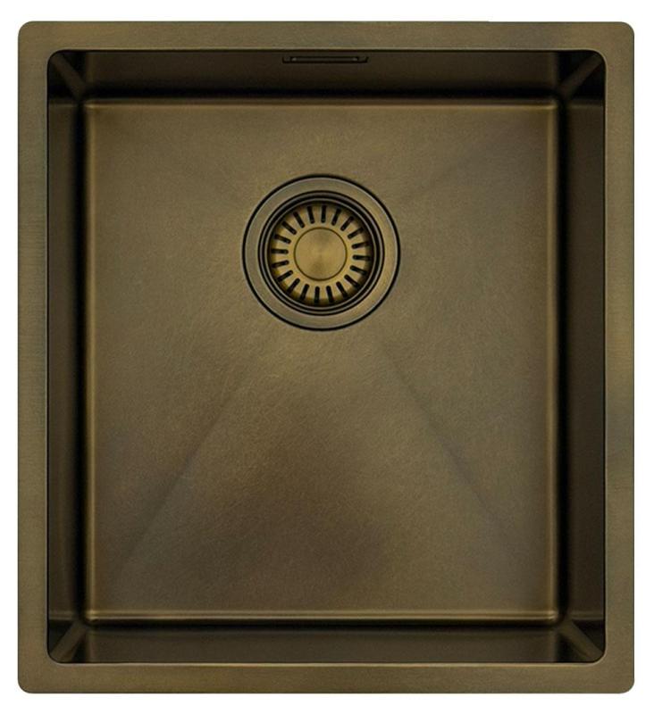 Pure.Sink Luxion PVD Antiek Bronzen spoelbak 36x40 cm onderbouw, vlakinbouw en opbouw met bodemrek PLX3640-64