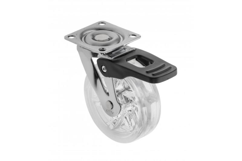 SHIFT 75 swivel roller with brake made of steel, polycarbonate (PC) and polyurethane (PU). Available in two color variants, with a diameter of 75 mm. Rollers are practical accessories that provide a support for furniture such as desk cabinets, tables, TV shelves, poufs and other light furniture that need to be moved. Rollers prevent scratches on the floor, do not damage the ground, dampen vibrations, and also allow quick movement of furniture. The wheels can withstand a load of up to 40 kg. The rotating roller handle allows movement in many directions, allows for smooth rotation of 360 degrees under load.